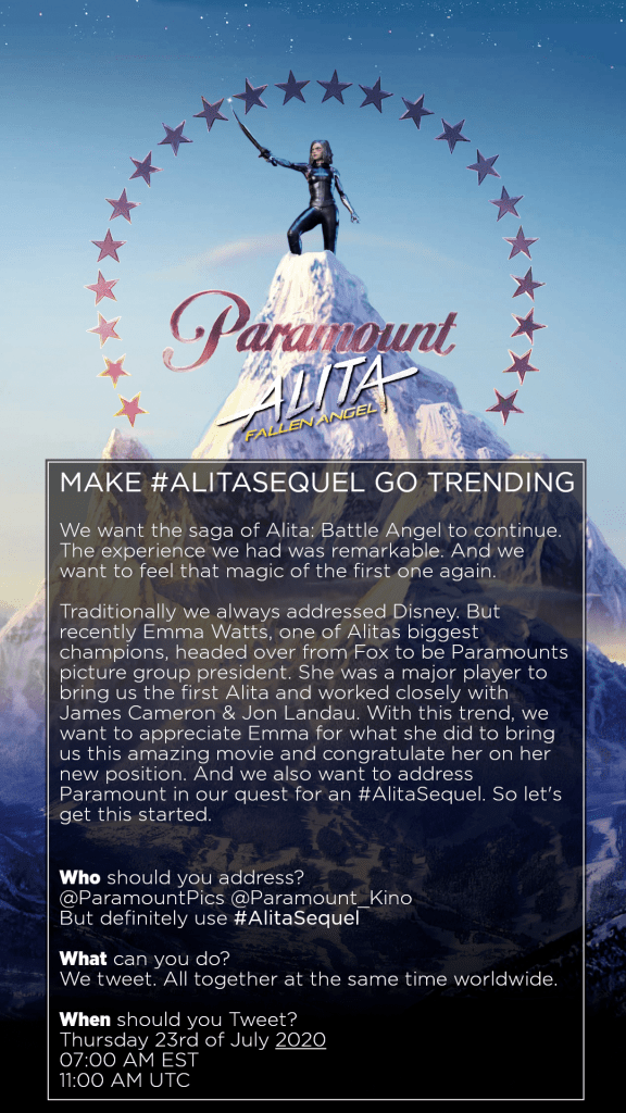 Since 9/9 is #AlitaAppreciationDay (#AlitaDay) again, we want to call all fans of #AlitaBattleAngel and all members of #AlitaArmy to create beautiful #Alita related art. Post with the hashtag: #AlitaArtContest – the best piece will be picked as the winner. No prize – but love and joy.