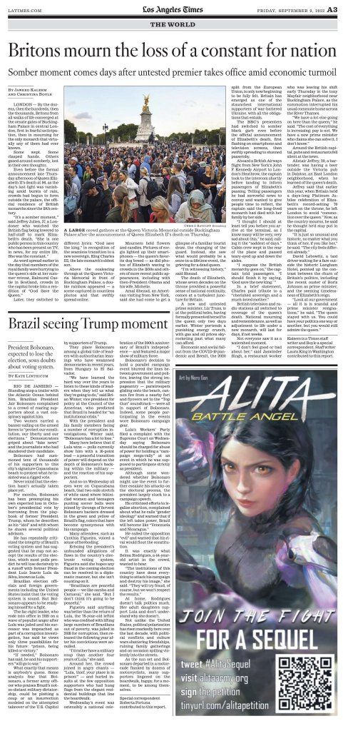 On page A3 of today's Sept 9 2022 Los Angeles Times there is a 1/4 page ad asking fans to tweet #AlitaSequel and sign the Alita sequel petition at this link: https://t.co/SR1bk55qaO pic.twitter.com/7S3BHq52W7